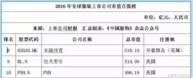 全球前十有7家是美國的,中國有兩家公司上榜,申洲國際和安踏體育。中國又輸。