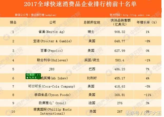 汽車前十名,美國有兩家通用和福特,分別排第3和第10。中國只有一家上汽,排第8名。