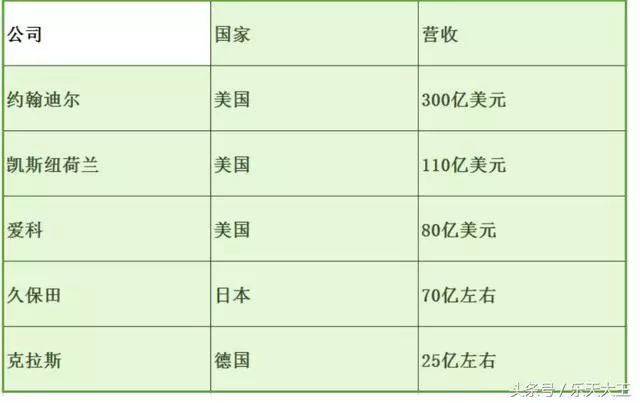 農用機械是美國的天下,全球前三名全是美國的。第一名迪爾營收超300億美元,其中農機業務8成。中國做得好的農機企業一拖和雷沃只有十幾億美元,不到迪爾的十分之一。