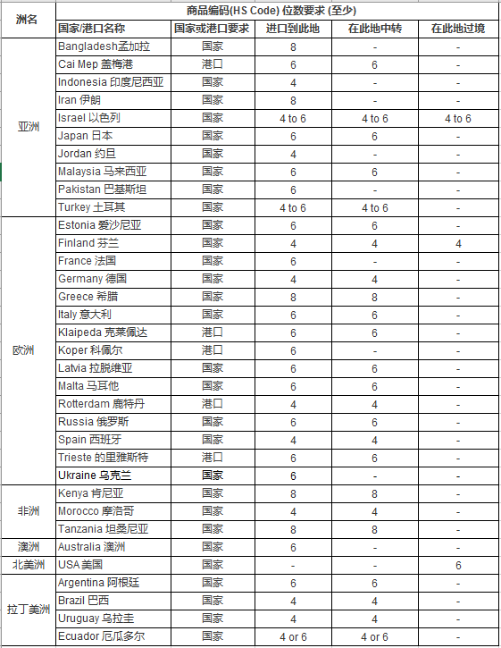 近年來,各國進口海關紛紛要求在進口的貨物提單的信息中顯示HS CODE的信息。在此我們為您匯總了到目前為止我們所收集到的各國對HS CODE的要求如下: