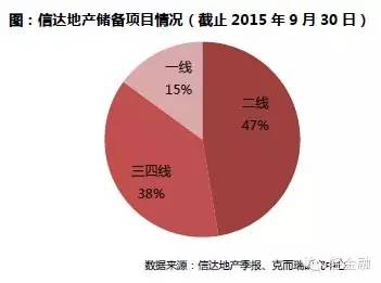 接連拿下上海、深圳和杭州的地塊前,信達地產的布局實際以二三線城市為主。截至2015年三季度,信達地產儲備項目總量506.93萬平方米,其中一線城市僅占15%,主要為上海和廣州,在廣州的為信達地產從中國信達“接盤”的不良資產重組開發項目;二線城市盡管占比最高達47%,但是其中不乏寧波、長春、沈陽、海口、烏魯木齊等市場和經濟相對較弱的城市;三四線城市占38%。