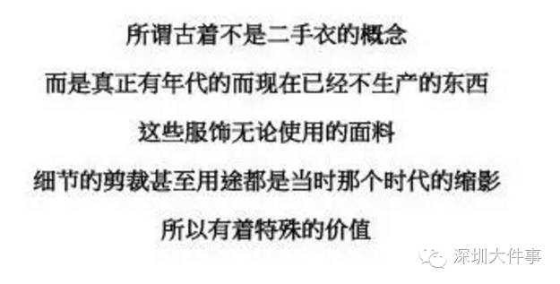 古著衣由日本流行而來,指在二手市場淘來的頂級服裝品牌,且獨一無二,僅此一件。