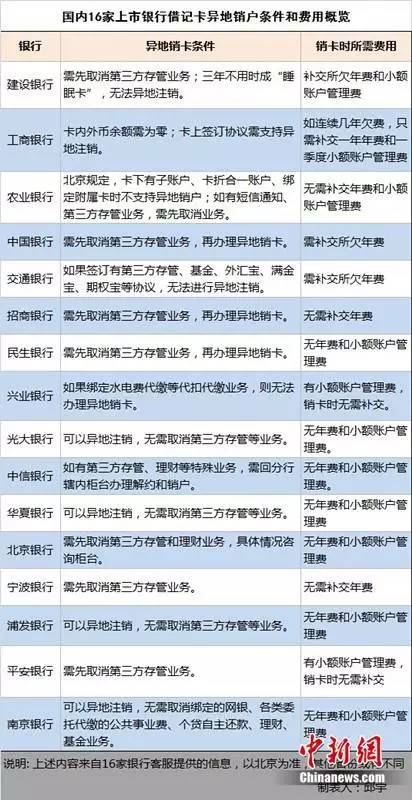 國內(nèi)16家上市銀行借記卡異地注銷條件和費用概覽。