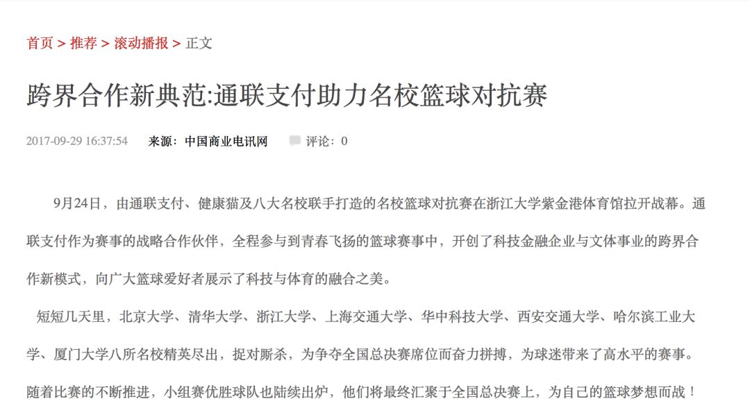 一位接近健康貓股東透露,由于健康貓的交易數據太不正常,2015年支付寶和微信支付先后切斷了對其App的支付通道。但隨后陸續接入通聯支付、快錢支付、易聯支付、連連支付、寶付支付、匯付支付等多家第三方支付公司通道。其中,2017年通聯支付曾作為賽事戰略合作伙伴,贊助健康貓旗下的賽事項目“名校籃球對抗賽”。