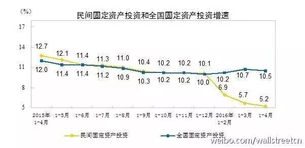 有一個數據非常重要,它堪稱“讓高層最為憂慮”,這就是“民間固定資產投資增速”。在第一季度,民間固定資產投資增速卻從去年底10.1%猛降至5.2%,遭遇近年來罕見的斷崖式下滑。