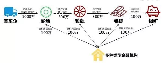 一般來說,一個核心企業的上下游會聚集成百上千家中小供應商和經銷商。區塊鏈技術可以將核心企業的信用拆解后,通過共享賬本傳遞給整個鏈條上的供應商及經銷商。核心企業可在該區塊鏈平臺登記其與供應商之間的債權債務關系,并將相關記賬憑證逐級傳遞。該記賬憑證的原始債務人就是核心企業,那么在銀行或保理公司的融資場景中,原本需要去審核貿易背景的過程在平臺就能一目了然。信用傳遞的問題可迎刃而解。