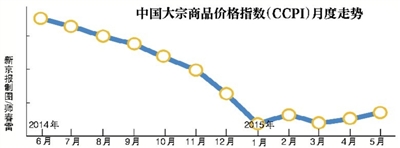 2014年下半年起,大宗商品價格全面下行。2015年1月中國大宗商品價格指數(CCPI)100.86點,較去年初下降29.4%。最近幾個月,該指數觸底反彈,5月CCPI 106.73點,較年初上漲3.1%,呈現回升趨勢。目前來看,大宗商品行情趨暖,部分板塊投資價值重現。