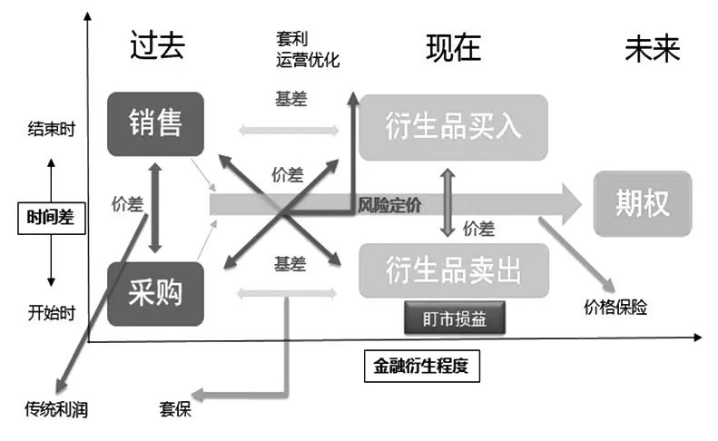 傳統(tǒng)大宗商品企業(yè)需要對風(fēng)險和利潤進行前瞻性的事中的主動管理。從采購銷售的被動定價變?yōu)橹鲃佣▋r。從關(guān)注絕對的價格的漲跌變?yōu)殛P(guān)注期現(xiàn)價格、地區(qū)差價和加工利潤等相對價格的把控。
