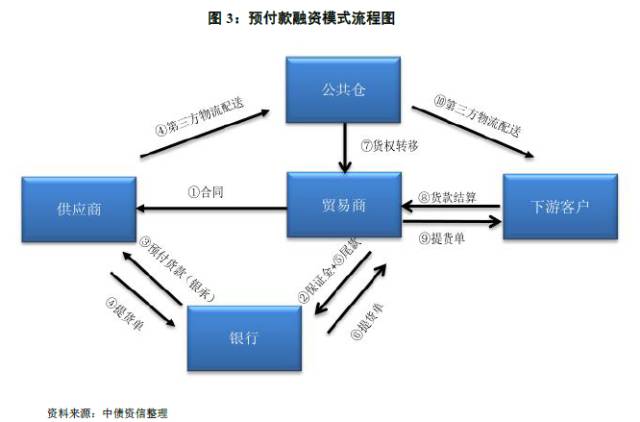 對于由客戶指定采購的代理業務,供應商一般會收取15%~20%的保證金,在貨權交割時進行尾款結算,這期間供應商的采購款為墊付款;一般貿易商在結算過程中易發生提前釋放貨權的情況,對下游客戶給予一定信用額度或信用賬期,形成一定的應收賬款,對于該種情況需關注其應收賬款后續回收情況;此外,貿易企業會利用應收賬款進行保理融資,由于本文貿易融資模式主要涉及貿易業務流程前端(采購環節),銷售端的保理融資我們將在后續系列專題供應鏈貿易中進行介紹。