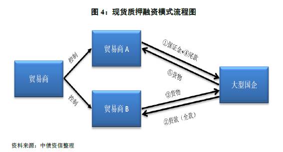 1、貿易商擁有獨立子公司A與B(一般為三級或四級子公司),若B公司擁有貨權,則由A公司向國企C支付保證金以委托采購貨物;
