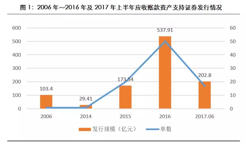 2017年上半年應收賬款資產支持證券發行單數與規模均高于去年同期,預計下半年仍將延續2016年以來的快速發展態勢