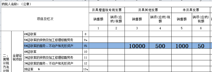 所以,開具定額發(fā)票的應(yīng)該填寫在開具其他發(fā)票欄次,沒有開具發(fā)票的部分應(yīng)該填寫在未開具發(fā)票欄次。