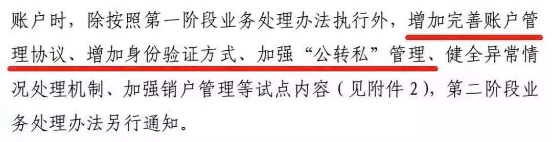 開戶證取消后,12月1日起,試點地區銀行將為企業開立基本存款,將增加賬戶管理協議,增加身份驗證方式,加強“公轉私”管理、健全異常情況處理機制、加強銷戶管理等試點內容,第二階段業務處理辦法另行通知。