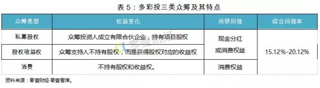 按回報(bào)方式,多彩投發(fā)布的地產(chǎn)眾籌項(xiàng)目可作如下分類:私募股權(quán)眾籌、股權(quán)收益權(quán)眾籌和消費(fèi)型眾籌,其特點(diǎn)如下表所示。在項(xiàng)目實(shí)際發(fā)布之時(shí),通常采取多種回報(bào)相結(jié)合的方式,以滿足融資方或投資人的多樣化需求。