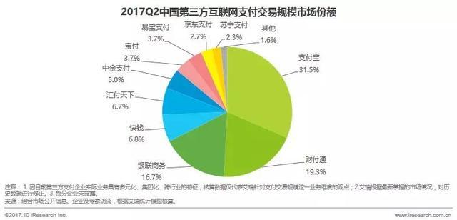 而根據艾瑞發布的中國第三方支付季度數據報告,2017年Q2,支付寶、財付通的市場份額居于前二,二者合計占據了第三方支付市場的半壁江山。因此,就國內移動支付市場而言,微信支付和支付寶還是占據較大的先發優勢。不過從艾瑞數據也可以看出,銀聯商務以16.7%的市場占有率緊隨其后。