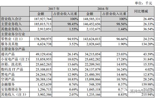 蘇寧易購于3月30日公布了2017年年報。2017年年報顯示,蘇寧易購2017年實現營業收入1879.27億元,同比增長26.48%;實現歸母凈利潤42.13億元,同比增長498.02%。蘇寧金融服務(上海)有限公司(下文簡稱:蘇寧金融)2017年實現營業收入21.79億元,同比增長103.53%;實現凈利潤5.08億元,同比增長4349.66%。