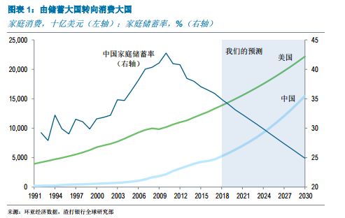 ? 家庭儲蓄率每年將下降約 1 個百分點,到 2030 年將由 2017 年的 36%降至25%,與近期趨勢保持一致。