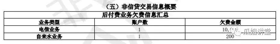 5、非信貸信息展示。電信欠費和自來水業務欠費,這兩個執行起來有困難。