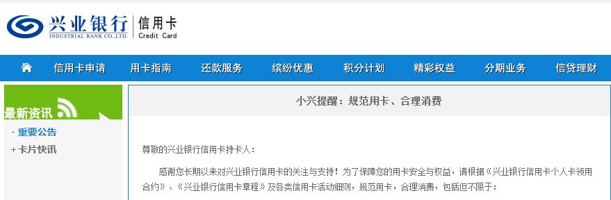 近日,「支付百科」注意到,又有一家銀行發布規范信用卡使用的通知,興業銀行發文提醒持卡人合理消費。