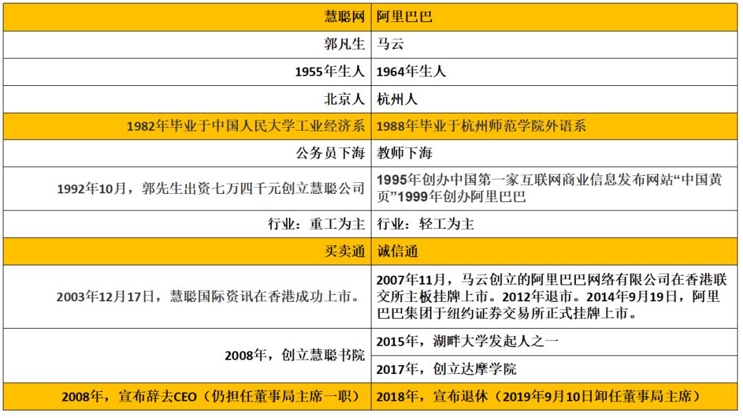 從阿里巴巴和慧聰網(wǎng)的各年年報和官網(wǎng)上,我們匯總了兩個公司歷年大事件。