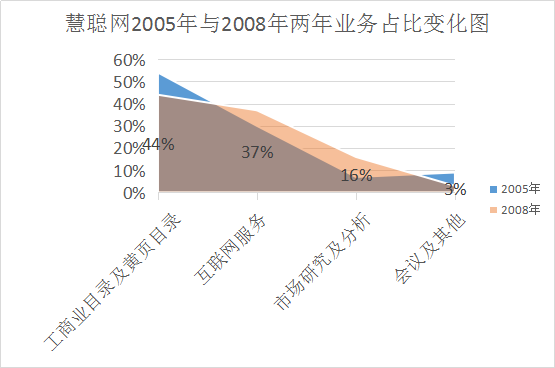 扭虧為盈的這三年時間中,慧聰網(wǎng)的四項主營中,互聯(lián)網(wǎng)服務(wù)和市場研究分析業(yè)務(wù)逐步擴張,線下的目錄和黃頁業(yè)務(wù)與會議業(yè)務(wù)逐步縮減。市場告訴我們,越來越多的客戶接受線上。
