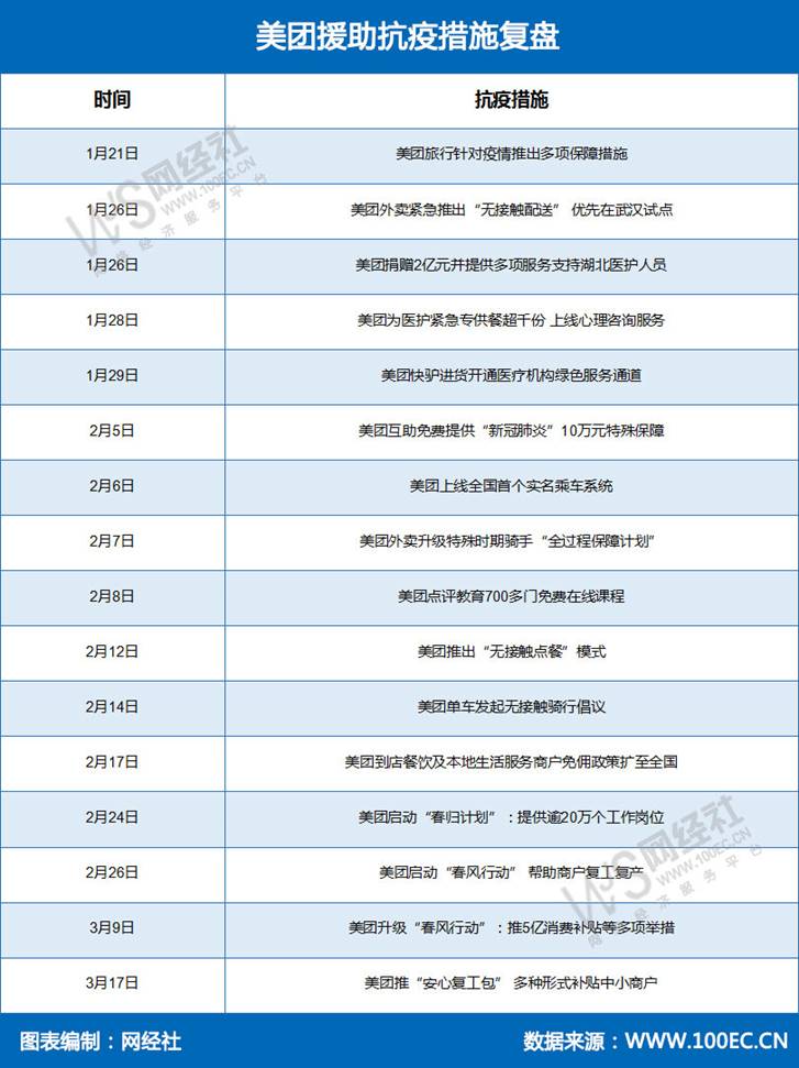 網(wǎng)經(jīng)社獲悉,美團在疫情應(yīng)對上,采取全方位保障的響應(yīng),捐贈2億元并提供多項支持湖北醫(yī)護人員,為醫(yī)護人員緊急提供團餐超千份、倡導(dǎo)“無接觸配送”、“無接觸點餐”、“無接觸騎行”等。在全國復(fù)工復(fù)產(chǎn)期間,美團接連推出“春歸計劃”、“春分行動”、“安心復(fù)工包”等政策,提升商家信心,加快平臺內(nèi)各項頻道有序回復(fù)。