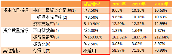 晉商銀行監(jiān)管指標(biāo)方面,截至2018年末,資本充足率12.99%,一級資本充足率和核心一級資本充足率均為10.63%;撥備覆蓋率212.68%;不良貸款率1.87%