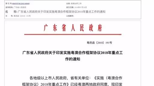 廣東省人民政府關(guān)于印發(fā)實(shí)施粵澳合作框架協(xié)議2018年重點(diǎn)工作的通知