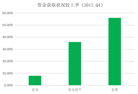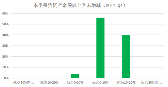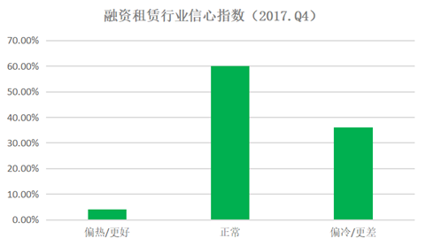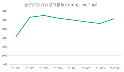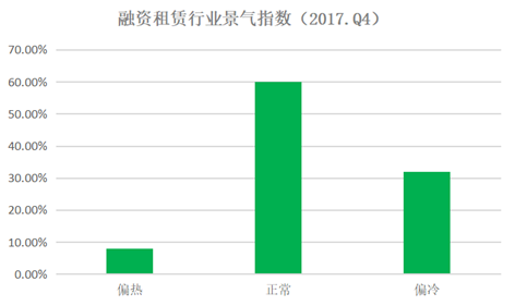 導(dǎo)讀 中國融資租賃行業(yè)景氣調(diào)查是中國融資租賃三十人論壇聯(lián)合中國外商投資企業(yè)協(xié)會租賃業(yè)工作委員會、天津東疆保稅港區(qū)共同完成,本文著重介紹2017第四季度行業(yè)景氣指數(shù),同時(shí)分享2016-2017年整個(gè)行業(yè)的變化情況。 上海樸覓鑫作為深耕融資租賃行業(yè)提供人力資源服務(wù)的專業(yè)公司,定期為廣大同行整理行業(yè)優(yōu)質(zhì)報(bào)告。 一、行業(yè)景氣指數(shù) 2017年第四季度,融資租賃行業(yè)景氣指數(shù)為51%,較第三季度的46%上升5個(gè)百分點(diǎn)。 雖然該指數(shù)自2016年第三季度的55%至2017年第三季度的46%,已連續(xù)四個(gè)季度持續(xù)下降,但在2017年第四季度實(shí)現(xiàn)了回升。整個(gè)2017年,融資租賃行業(yè)景氣指數(shù)呈現(xiàn)先降后升的態(tài)勢。 2017年第四季度,60%參與調(diào)查的融資租賃高管認(rèn)為當(dāng)前融資租賃行業(yè)景氣程度“正?!?,較上季下降5個(gè)百分點(diǎn);32%參與調(diào)查的高管認(rèn)為當(dāng)前融資租賃行業(yè)景氣程度“偏冷”,與上季基本持平;8%參與調(diào)查高管認(rèn)為當(dāng)前融資租賃行業(yè)景氣程度“偏熱”,較上季上升4個(gè)百分點(diǎn)。 二、行業(yè)信心指數(shù) 對于下一個(gè)季度(2018年第一季度),融資租賃行業(yè)信心指數(shù)為38%,較上季度的55%明顯回落,綜合資金等各方面壓力,企業(yè)對行業(yè)未來發(fā)展繼續(xù)持偏悲觀態(tài)度。 其中,60%參與調(diào)查者認(rèn)為下一個(gè)季度行業(yè)將繼續(xù)保持“正?!卑l(fā)展;36%的參與調(diào)查高管認(rèn)為下一個(gè)季度行業(yè)發(fā)展將“更差”;僅有4%參與調(diào)查者認(rèn)為下一個(gè)季度行業(yè)發(fā)展將“更好”。 三、業(yè)務(wù)發(fā)展?fàn)顩r 重點(diǎn)提示:超過九成受調(diào)查企業(yè)2017年第四季度資產(chǎn)規(guī)模實(shí)現(xiàn)增長。 2017年第四季度,40%參與調(diào)查高管所在企業(yè)租賃資產(chǎn)余額比上季增加10-20%;56%參與調(diào)查高管所在企業(yè)租賃資產(chǎn)余額比上季增加了0-10%;4%參與調(diào)查高管所在企業(yè)租賃資產(chǎn)余額比上季減少了0-10%。 根據(jù)調(diào)查,16%參與調(diào)查的高管表示經(jīng)營租賃資產(chǎn)占比較上季提升,56%表示與上季度持平,4%表示與上季度相比有所下降,另有24%未開展經(jīng)營性租賃業(yè)務(wù)。 四、資金獲取情況 重點(diǎn)提示: 八成被調(diào)查企業(yè)認(rèn)為2017年第四季度實(shí)際融資成本有所上升。 2017年第四季度,8%的被調(diào)查高管表示本季度所在企業(yè)融資較上季更易,較上季下降3個(gè)百分點(diǎn);36%的被調(diào)查高管表示基本持平,較上季下降18個(gè)百分點(diǎn);56%的被調(diào)查高管表示本季度所在企業(yè)融資較上季更難。 另外,80%的被調(diào)查高管表示本季實(shí)際融資成本較上季有所上升,28%的被調(diào)查高管表示本季信貸審批通過率較上季下降,資金面持續(xù)緊張。 五、盈利情況 重點(diǎn)提示:本季度租賃公司不良資產(chǎn)率處相對穩(wěn)定階段。 2017年第四季度,52%參與調(diào)查的高管表示本季度所在企業(yè)盈利狀況較上季度實(shí)現(xiàn)增盈或減虧;40%參與調(diào)查的高管表示盈虧持平;另有8%的高管表示盈利狀況較上季度差。 68%參與調(diào)查的高管表示,其所在公司不良資產(chǎn)比率較上一季度變化不大。 六、展業(yè)情況 重點(diǎn)提示:24%被調(diào)查企業(yè)第四季度人員數(shù)量較上季度有所增加。 2017年第四季度,32%參與調(diào)查的高管表示本季所在企業(yè)展業(yè)狀況較上季更好;68%參與調(diào)查的高管表示本季所在企業(yè)展業(yè)狀況較上季持平;本次無被調(diào)查企業(yè)出現(xiàn)展業(yè)狀況較上季度更差的情形。 另外,72%被調(diào)查企業(yè)第四季度人員數(shù)量較上季度基本不變,24%有所增加,上季度這一數(shù)字為46%;4%的企業(yè)員工數(shù)量有所減少。 2016年第一季度—2017年第四季度行業(yè)景氣指數(shù)及信心指數(shù)變化圖: