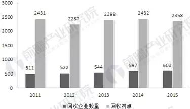 據前瞻產業研究院發布的《報廢汽車回收行業市場前瞻與投資戰略規劃分析報告》數據顯示,2015年,全國獲得拆解資質的企業數量603家,同比增加1%;隸屬回收網點2358個,同比下降3%;從業人員2.8萬人。報廢汽車回收網點已覆蓋全國80%以上的縣級行政區域。全年回收拆解報廢機動車合計277.53萬輛,同比增長26.1%,其中報廢汽車回收量260萬輛,同比增長18.18%,摩托車回收量17.53萬輛,同比下降23.70。
