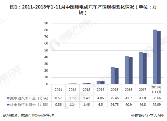 純電動汽車是完全以可充電電池為動力的汽車,因此續(xù)航時間是發(fā)展瓶頸。由于純電動汽車完全不涉及燃油,對環(huán)境友好,發(fā)展前景受廣泛關(guān)注。我國的新能源汽車計劃以發(fā)展純電動汽車為主。今年前11個月,純電動汽車產(chǎn)銷分別實現(xiàn)80.66萬輛和79.09萬輛,同比增長50.30%和55.66%,產(chǎn)銷占新能源汽車總量的76.6%和76.8%。
