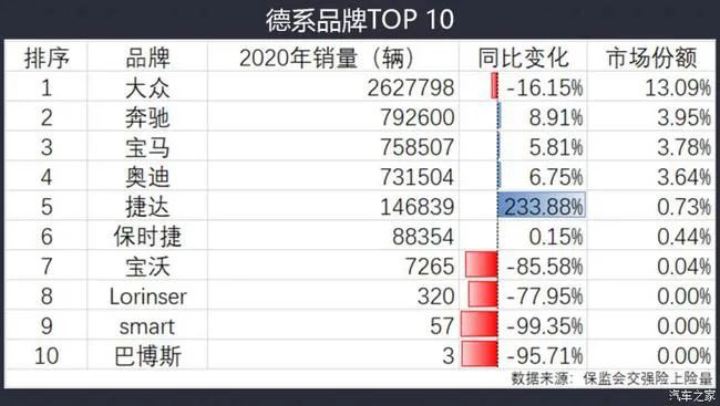 2020年德系汽車品牌銷量,圖源汽車之家 與此同時,神州優(yōu)車的汽車新零售模式,也損害了原先經(jīng)銷商的利益。為此,在2019年初,還發(fā)生了眾多寶沃汽車經(jīng)銷商代表跑到北汽福田總部進行維權(quán)的事件,想要北汽福田給予“退網(wǎng)補償”。