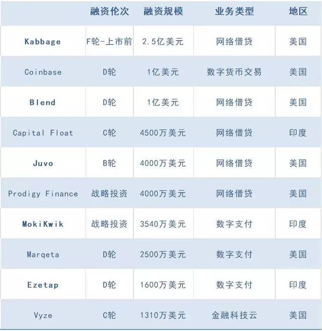 按融資規模計算,2017年8月海外金融科技投融資前10名單如下: