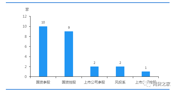 如圖3所示,具有背景的問題平臺(tái)中,國資系數(shù)量最多,高達(dá)19家,其中國資參股10家,國資控股9家;上市系3家,其中2家上市公司參股,1家上市公司控股;風(fēng)投系2家。