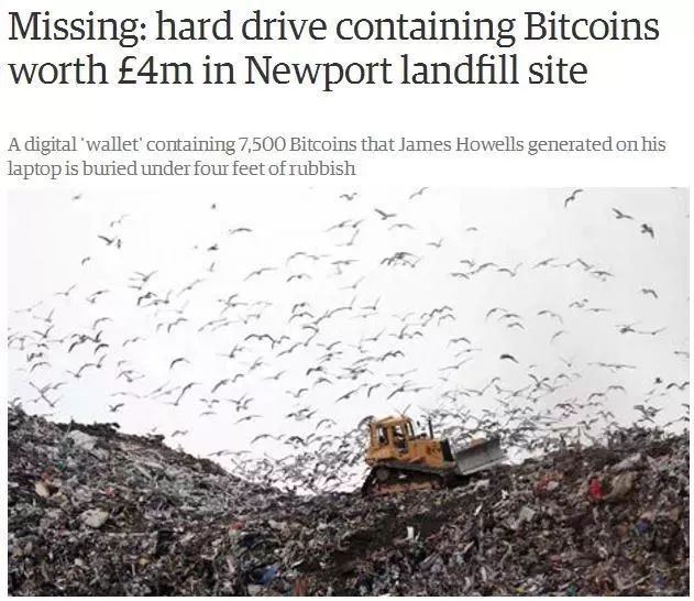 2013年夏天,英國小伙子豪威爾在家大掃除時疏忽扔掉了一塊舊硬盤,硬盤里保存著7500枚比特幣的錢包密碼。按照近期頻繁觸及的16763.5美元的價格,豪威爾4年前丟棄的比特幣價值高達1.26億美元,折合人民幣高達8.3億元!于是,他請求當地政府讓他花6500萬去挖一座垃圾場...