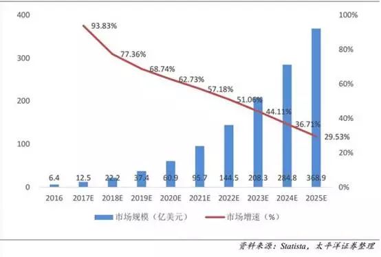 人工智能(Artificial Intelligence),英文縮寫為AI,通常是指研究、開發用于模擬、延伸和擴展人的智能的理論、方法、技術及應用系統的一門技術科學。2017年12月13日,中國工業和信息化部印發《促進新一代人工智能產業發展三年行動計劃(2018-2020年)》,明確將人工智能作為新技術經濟體系轉型的關鍵推動力。世界經濟論壇將人工智能稱為第四次工業革命(4IR)的基石。根據艾瑞咨詢預計,2020年全球AI市場規模將達到1190億元,年復合增速約19.7%;同期中國人工智能市場規模將達91億元,年復合增速有望超過50%。