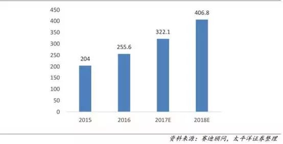 賽迪顧問預測,到2018年中國人工智能市場規模將超406億。中國AI產品目前以服務機器人、智能工業機器人及機器視覺為主,三者占據整個產品市場超80%的份額。